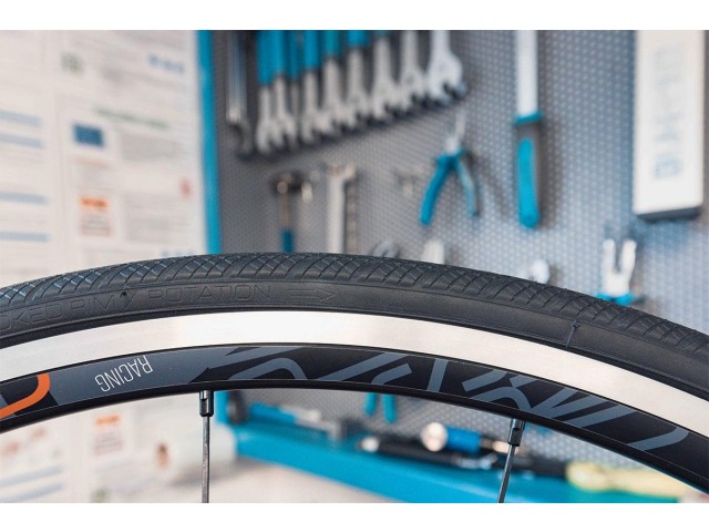 13.) Preverimo, če se je plašč (guma) lepo ulegel v kanal tako, da zavrtimo obroč