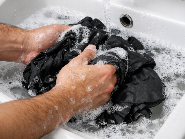 Žepov ne napolnite preveč in po vsaki vožnji operite oblačila.